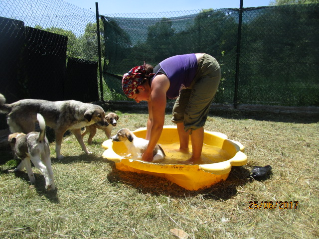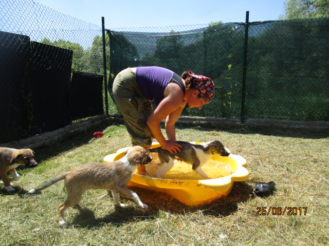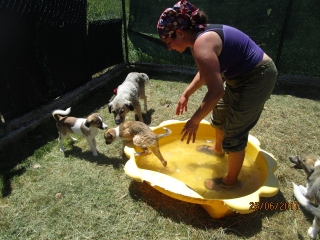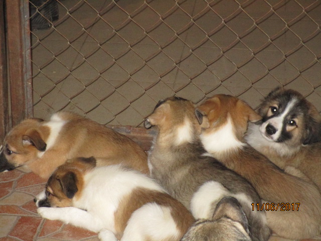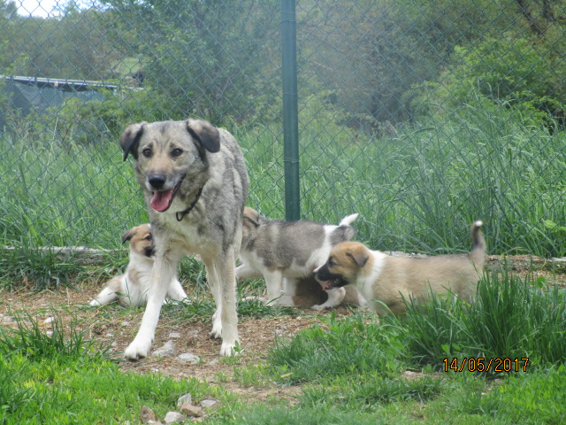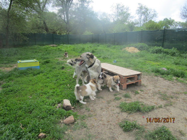 9.5.17: Suzi hat die OP gut überstanden und durfte wieder nach Hause. Auf dem Rückweg sah Asja in der Nähe einer Tankstelle auf der Autobahn eine Mutter mit ihren kleinen Welpen nach Futter suchen. Sie hat angehalten und die Familie gefüttert und Fotos gemacht und diese dann Magi gezeigt. Dann haben sie entschieden, die Familie nach Radulovtsi zu holen. Problemlos liess Ambar, die Mutter, sich ins Auto laden mit ihren 5 Welpen. Es sind 4 Weibchen und 1 Rüde……