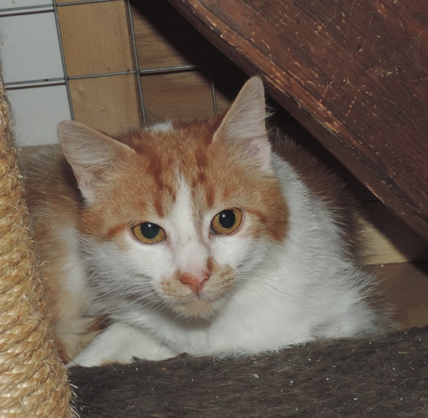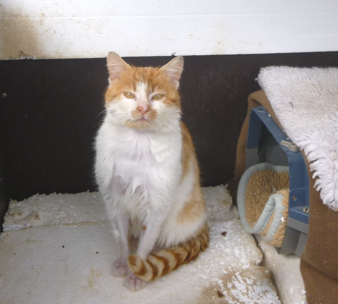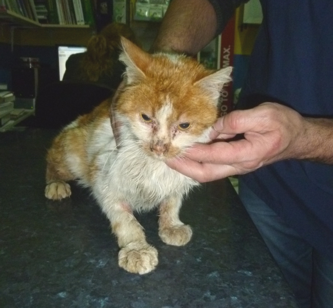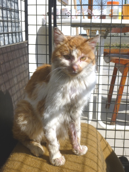 Anfang Februar 2015 sah Asja auf ihrem Rückweg von der Station einen kleinen Fellknäuel in der Nähe eines Bauernhauses. Er bewegte sich nicht, lag einfach nur da. Beim näheren Hinschauen entdeckte sie einen jungen Strassenkater in einem schrecklichen Zustand. Er war schmutzig, abgemagert, hatte Fellprobleme. Niemand vermisste ihn, also packte Asja ihn ein und brachte ihn in die Klinik. Er hatte Glück, bald durfte er zu Magi in ein Einzelgehege und wurde aufgepäppelt. In der Zwischenzeit hat er sich schön erholt, hustet noch etwas weil seine Lunge doch recht strapaziert war. Er ist jedoch so weit, dass er nun ein schönes Zuhause sucht, wo man ihn noch ein wenig weiter päppelt. Wer hätte Lust, ihn bei sich aufzunehmen?